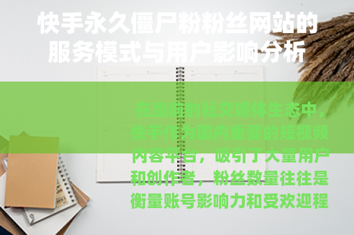在当前的社交媒体生态中,快手作为国内重要的短视频内容平台,吸引了大量用户和创作者,粉丝数量往往是衡量账号影响力和受欢迎程度的一个显性指标,在这一背景下,一些提供所谓“永久僵尸粉”粉丝增涨服务的网站逐渐进入部分用户的视野,这些网站通常承诺能够快速、批量地为快手账号增加关注者,这些关注者通常被称为“僵尸粉”,即非真实活跃用户,本文将就此类服务的运作模式、潜在影响及行业现象进行客观阐述。