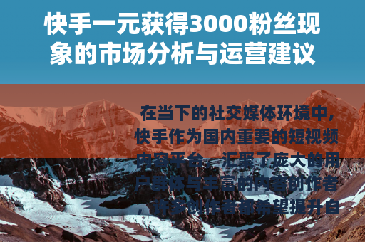 在当下的社交媒体环境中,快手作为国内重要的短视频内容平台,汇聚了庞大的用户群体与丰富的内容创作者,许多创作者都希望提升自己的粉丝数量,以增强影响力或开拓更多可能性,在此背景下,网络上出现了诸如“一元获得3000粉丝”这类服务信息,这反映了一种快速提升账号数据的市场需求。