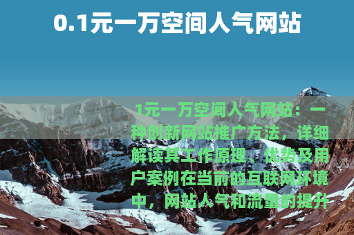 1元一万空间人气网站:一种创新网站推广方法,详细解读其工作原理、优势及用户案例 在当前的互联网环境中,网站人气和流量的提升已成为许多网站主关注的核心议题,随着网络服务的多样化,一种以“0.1元一万空间人气网站”为特色的推广模式逐渐走入公众视野,这项服务以极低的成本提供大量人气支持,旨在帮助网站快速增强在线可见度和用户互动,本文将全面介绍这项服务的运作方式、主要优点以及实际应用案例,为网站主提供一个清晰的参考框架。 我们来理解“0.1元一万空间人气网站”的基本概念,这项服务通常指通过技术手段或网络合作,以每0.1元的价格为网站带来约一万次的人气提升,这里的人气可能包括页面访问量、用户点击或虚拟空间互动,具体形式取决于服务提供商的设计,这种模式的出现,反映了市场对低成本高效推广方案的需求,尤其适合预算有限的个人或小型企业网站,它通过批量操作或自动化工具,模拟或引导真实用户行为,从而在短时间内提升网站的数据指标。 从工作原理来看,这项服务主要依赖于互联网技术的整合应用,一些平台利用分布式网络或合作伙伴资源,将流量定向导入目标网站;另一些则通过算法优化,增加网站在搜索引擎或社交媒体上的曝光度,整个过程注重效率和可扩展性,用户只需简单设置,即可启动人气增长计划,这种运作方式不仅节省了时间,还降低了传统广告投放的复杂性,随着技术的发展,服务商不断优化算法,以确保人气提升过程符合网络平台的常规标准,避免对网站长期运营产生不利影响。 这种服务的优势显而易见,经济性是首要亮点:以0.1元的投入获得一万次人气,成本远低于传统推广渠道,如付费广告或内容营销,这对于初创网站或资源有限的个人项目来说,是一个极具吸引力的选择,快速见效:服务通常在短时间内就能产生效果,帮助网站迅速提升流量数据,从而增强品牌信心或吸引更多自然用户,易于使用也是关键优点:用户无需深厚的技术背景,只需通过简单界面操作,即可定制人气提升方案,适应不同网站类型和需求。 在实际应用场景中,“0.1元一万空间人气网站”服务广泛适用于多种领域,个人博客和创作者网站可以利用它来增加文章阅读量和评论互动,提升内容影响力;企业官网则可通过人气提升来增强产品展示效果,吸引潜在客户;电商平台也能借此提高商品页面的访问量,促进销售转化,教育和非营利组织网站也可通过这项服务扩大信息传播范围,实现社会价值,这些应用展示了服务的灵活性和实用性,使其成为现代网络推广中的一个补充工具。 选择可靠的服务提供商时,网站主应考虑几个方面,建议查看服务商的历史记录和用户评价,以了解其稳定性和效果;可以尝试小规模测试,观察人气提升是否与预期相符,了解服务的技术支持和售后保障也很重要,确保在使用过程中遇到问题时能及时解决,通过这些步骤,用户可以更好地匹配自身需求,获得满意的结果。 用户案例进一步印证了这项服务的价值,某小型文化网站通过采用“0.1元一万空间人气网站”服务,在一个月内将日均访问量从几百次提升到数千次,从而吸引了更多合作机会,另一个例子是个人摄影师的作品集网站,使用该服务后,图片浏览量和分享率显著增加,帮助他建立了更广泛的在线粉丝群,这些案例表明,在合理使用的前提下,这项服务能为网站带来积极的改变。 网站主在使用过程中也应保持理性态度,虽然服务具有成本低和见效快的优点,但人气提升应视为短期辅助手段,而非长期依赖,网站的核心发展仍需依靠优质内容、用户体验和自然流量积累,建议将这项服务作为推广策略的一部分,结合其他方法如社交媒体运营或SEO优化,以实现更全面的在线增长。 展望未来,随着人工智能和大数据技术的进步,“0.1元一万空间人气网站”服务可能会更加智能化和个性化,通过数据分析精准定位目标受众,或集成更多互动功能以增强人气质量,这将继续推动网络推广行业的创新,为网站主提供更多样化的选择。 “0.1元一万空间人气网站”作为一种新兴推广方法,以其低成本和高效率的特点,在现代网络生态中占有一席之地,通过理解其运作原理、优势和应用方式,网站主可以更有效地利用这项服务来提升在线表现,在数字化浪潮中,合理运用此类工具,将有助于网站实现更快的成长和更广泛的影响力。