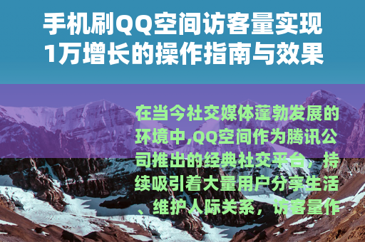 在当今社交媒体蓬勃发展的环境中,QQ空间作为腾讯公司推出的经典社交平台,持续吸引着大量用户分享生活、维护人际关系,访客量作为衡量空间活跃度与受欢迎程度的关键指标,常常被用户关注,许多用户希望通过便捷的方式提升访客量,以增强个人社交影响力,随着移动设备的普及,手机操作成为主流,使得提升QQ空间访客量变得更加容易,本文将系统介绍如何通过手机将QQ空间访客量提升至1万,并分析其相关方面,为用户提供实用参考。