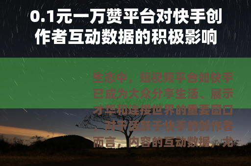 在快手这样充满活力的内容平台上,“0.1元一万赞”这类服务现象的出现,反映了市场对互动数据需求的多样化,它在一定程度上为创作者提供了快速启动内容传播的可能性,但绝非成功的捷径,创作者需要理解平台规则,平衡短期效益与长期发展,始终将创作优质内容、维护真实社区关系作为立足点,唯有将真实的情感连接与有价值的信息传递置于首位,才能赢得算法与人心的双重认可,在快手的舞台上获得真正稳固的成长。