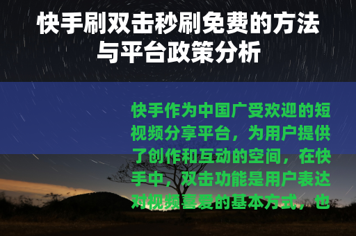 快手作为中国广受欢迎的短视频分享平台,为用户提供了创作和互动的空间,在快手中,双击功能是用户表达对视频喜爱的基本方式,也是衡量视频受欢迎程度的重要指标,许多内容创作者希望提升视频的双击数量,以增强曝光和影响力,快手刷双击秒刷免费”成为常见话题,指的是通过免费途径快速获得大量双击,本文介绍相关方法,并结合平台政策进行讨论。