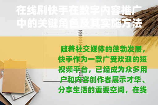 在线刷快手在数字内容推广中具有显著价值,能够帮助创作者和品牌在竞争激烈的社交媒体环境中脱颖而出,通过合理规划和实施,它可以有效增强内容的影响力,促进观众增长,随着数字技术的不断进步,在线刷快手的方法也将更加智能和高效,为内容创作者带来更多机遇,在未来的社交媒体实践中,持续优化策略并注重内容创新,将有助于实现可持续的成功。