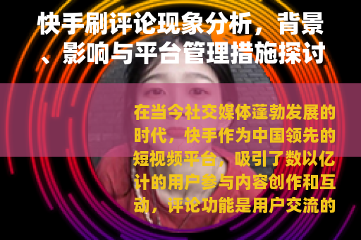 在当今社交媒体蓬勃发展的时代,快手作为中国领先的短视频平台,吸引了数以亿计的用户参与内容创作和互动,评论功能是用户交流的核心环节,但近年来,“刷评论”现象逐渐浮现,即通过人工或自动化手段大量增加评论数量,以提升内容曝光或塑造虚假人气,这种行为不仅涉及用户行为模式的变化,也对平台生态产生了一系列连锁反应,本文将从现象解读、影响因素及平台治理策略等方面,全面分析快手刷评论的现状,旨在提供客观的观察和思考,促进网络环境的健康发展。