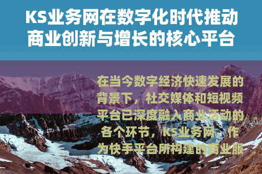 在当今数字经济快速发展的背景下,社交媒体和短视频平台已深度融入商业活动的各个环节,KS业务网,作为快手平台所构建的商业服务网络,正逐步成为企业实现市场拓展、品牌建设和销售转化的重要支柱,它不仅连接了内容创作者、消费者与企业,还通过多元化的工具和服务,赋能商业生态的持续繁荣,本文将系统阐述KS业务网的概念、构成、功能、应用场景及其在当代商业环境中的价值,以帮助读者全面理解这一平台如何助力企业在数字化浪潮中把握机遇。