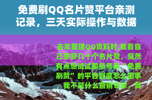 去年整理QQ资料时,看着自己寥寥几十个名片赞,突然有点想试试那些号称“免费刷赞”的平台到底怎么回事,我不是什么营销专家,就是普通用户,有点好奇心,也愿意花点时间折腾,前后大概试了七八个平台,也走了一些弯路,这里就当聊天分享一下过程。