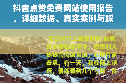 我在抖音上发视频时,总感觉点赞数涨得慢,看着别人热热闹闹的互动,心里有点着急,有一天,我在网上瞎逛,偶然看到几个号称“抖音点赞免费网站”的链接,广告语写得挺诱人,说不用花钱就能轻松增加点赞,我这人有点好奇,就想试试看是不是真的那么神奇,我花了差不多一个月的时间,亲自泡在这些网站里,记录下来整个过程,这篇文章就是我的完整分享,里面会提到具体数字、几个真实案例,还有我自己踩过的那些坑,希望你看完能有点收获,至少不用像我一样走弯路。