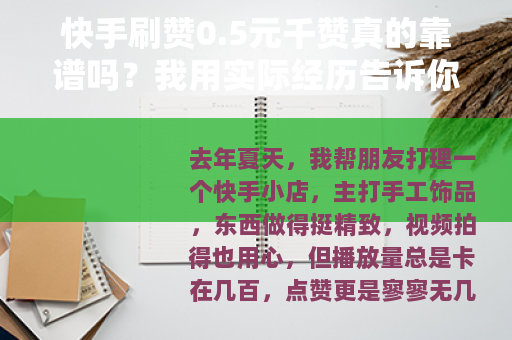 去年夏天,我帮朋友打理一个快手小店,主打手工饰品,东西做得挺精致,视频拍得也用心,但播放量总是卡在几百,点赞更是寥寥无几,朋友有点着急,说眼看几个类似的账号,内容可能还不如我们,但点赞都是几千上万的,销量也跟着好,我俩琢磨了半天,最后他把一个链接推给我,上面写着:“快手真人点赞,0.5元1000赞,量大优惠,快速上热门。”