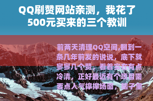 前两天清理QQ空间,翻到一条几年前发的说说,底下就寥寥几个赞,看着实在有点冷清,正好最近有个项目需要点人气撑撑场面,脑子里就冒出个念头:要不试试那些刷赞网站?说实在的,这东西我知道存在很久了,但从来没亲手碰过,好奇心加上那点实际需求,我就决定稍微“投资”一下,当回小白鼠,整个过程谈不上惊心动魄,但确实有点意思,也攒了点实在的经验。