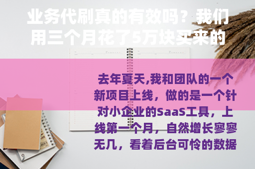 去年夏天,我和团队的一个新项目上线,做的是一个针对小企业的SaaS工具,上线第一个月,自然增长寥寥无几,看着后台可怜的数据,团队里开始有人嘀咕:“要不要先找点‘业务代刷’,把启动数据做漂亮点?” 所谓的“业务代刷”,就是通过一些服务商,给产品刷出一些初始的订单、用户评论、安装量或者访问数据,我们心里都清楚这东西有点灰色,但焦虑之下,还是决定“试一试水”,没想到,这一试,直接浪费了五万预算,还差点把项目带沟里。