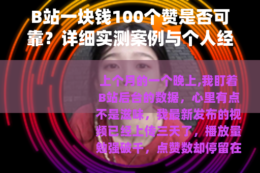上个月的一个晚上,我盯着B站后台的数据,心里有点不是滋味,我最新发布的视频已经上传三天了,播放量勉强破千,点赞数却停留在可怜的47个,作为一个业余UP主,我深知互动数据对视频推广的重要性——尤其是点赞,它能直接影响到作品的曝光和推荐权重,就在我琢磨着怎么提升数据的时候,浏览器角落弹出了一条广告:“B站一块钱100个赞!快速提升人气,限时优惠!”说实话,那一刻我有点心动,一块钱100个赞,听起来简直像白菜价,如果投入几十块,岂不是能瞬间让视频看起来火爆?但转念一想,天下哪有这么便宜的事,我决定亲自测试一下,顺便记录整个过程,给同样有需求的朋友们一个参考,这篇文章就是我的完整经历,包括具体数字、实际案例和一些失误教训,希望能帮你少走弯路。