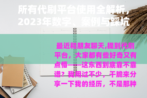代刷平台这个行业,水挺深,但也不是完全不能用,我的经验是,保持点平常心,别指望它们创造奇迹,多结合实际需求,慢慢就能找到相对靠谱的选择,如果你正准备试试,希望这些数字、案例和踩坑经历能帮到你——至少,别重复我那些尴尬事了,有啥问题,也欢迎交流,毕竟这都是实实在在用出来的心得。