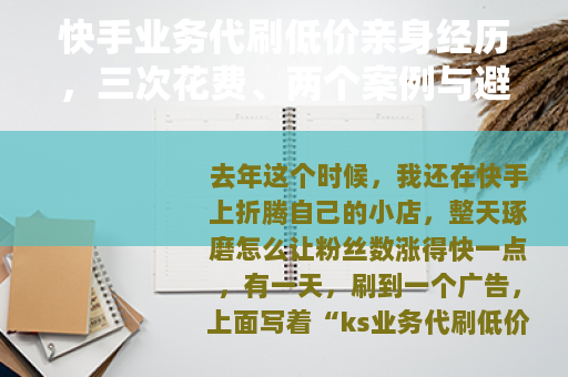 去年这个时候,我还在快手上折腾自己的小店,整天琢磨怎么让粉丝数涨得快一点,有一天,刷到一个广告,上面写着“ks业务代刷低价,1000粉丝不到50元”,心里就有点痒痒的,说真的,那时候我对这些代刷服务一知半解,只觉得价格便宜,试试也没啥损失,结果呢,几个月下来,我前后花了500多块钱,折腾了三回,总算摸出点门道,今天就跟大伙儿聊聊这事,不是什么教程,就是纯分享,希望能帮你省点钱少走点弯路。