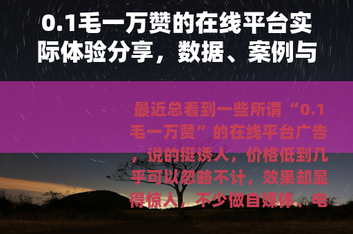 最近总看到一些所谓“0.1毛一万赞”的在线平台广告,说的挺诱人,价格低到几乎可以忽略不计,效果却显得惊人,不少做自媒体、电商或者需要短期内提升互动数据的朋友,可能都动过心,我也没忍住,实际试了几次,今天就想随意聊聊这个过程,夹杂一些真实数字、案例和我自己踩过的坑,纯粹是个人经历,没什么标准结论,大家就当个参考。