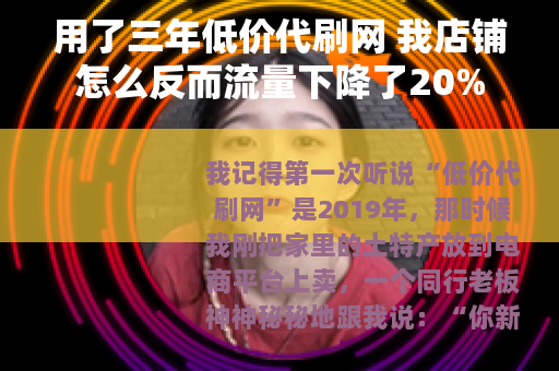 我记得第一次听说“低价代刷网”是2019年,那时候我刚把家里的土特产放到电商平台上卖,一个同行老板神神秘秘地跟我说:“你新店没流量?找个代刷啊,50块100个访客,500块包月无限刷,排名嗖嗖往上走。”那时候我啥也不懂,看着自己店铺每天个位数的访问量,心里一急,就动了心思。