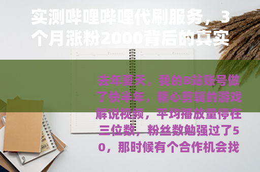 去年夏天,我的B站账号做了快半年,精心剪辑的游戏解说视频,平均播放量停在三位数,粉丝数勉强过了50,那时候有个合作机会找上门,对方委婉地提了句:“你内容挺好,就是粉丝基数有点小。” 就这一句话,让我动了个念头:要不,试试那些所谓的“推广服务”?