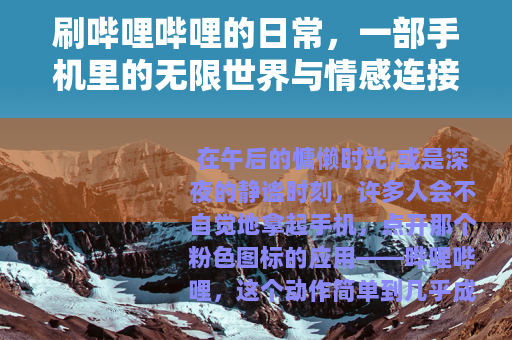 在午后的慵懒时光,或是深夜的静谧时刻,许多人会不自觉地拿起手机,点开那个粉色图标的应用——哔哩哔哩,这个动作简单到几乎成了肌肉记忆,却可能开启一段长达数小时的沉浸之旅,从搞笑短片到深度纪录片,从音乐演奏到生活分享,哔哩哔哩以其丰富的内容库,悄然编织出一张巨大的网络,将无数用户的注意力轻轻拢入怀中,这不仅仅是“刷视频”那么简单;它已成为一种文化现象,一种生活仪式,甚至是一种社交语言,在数字时代的浪潮中,刷哔哩哔哩不仅仅是为了消遣,更是在寻找共鸣、学习新知或单纯地逃离现实的一小会儿,当我们谈论“刷”这个动作时,它背后藏着怎样的心理动因?这个平台如何塑造了我们的娱乐方式?又如何在潜移默化中影响了我们的日常节奏?这篇文章将从个人体验出发,探讨刷哔哩哔哩的多维图景,不追求宏大叙事,而是聚焦于那些细微而真实的生活片段。