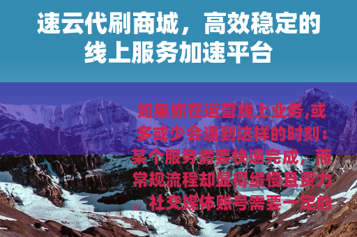 速云代刷商城这类平台,反映的是当前线上环境中对效率的多样化追求,它提供了一种解决问题的路径,将繁琐、重复的流程转化为可量化、可购买的标准服务,对于需要处理类似需求的人来说,它的意义在于提供了一个可选的工具,让有限的精力能够更合理地分配,在快节奏的互联网运营中,这种能够清晰定义输入与产出的服务模式,自有其存在的空间和实用性。