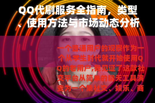 作为一个从学生时代就开始使用QQ的老用户,我见证了这款社交平台从简单的聊天工具演变为一个集社交、娱乐、商业于一体的多元生态,在近几年,随着QQ空间、群组和公众号功能的丰富,一种被称为“QQ代刷”的服务悄然兴起,最初,我只是在好友动态中偶尔看到一些账号突然人气飙升,或者某些帖子获得惊人的点赞数,后来才意识到这背后可能有着专门的服务在运作,出于好奇,我开始接触和了解这个领域,发现它并非想象中的那么简单,而是一个涉及技术、市场和用户心理的复杂现象,我想以个人视角,分享我对QQ代刷的所见所闻,希望能为感兴趣的人提供一个全面的参考。