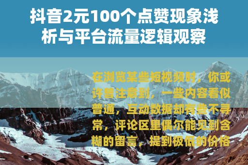 从表面看,这是一种简单的交换,对部分创作者,尤其是刚刚起步、渴望被看见的人而言,初期数据的停滞确实会带来焦虑,在算法推荐机制中,互动数据是内容能否进入更大流量池的关键参数之一,一种最直接的需求便产生了:用最小的成本,启动这最初的“推力”,两元钱一百个赞,价格低到几乎可以忽略不计,它购买的不是实质的影响力,而更像是一张试图敲开算法门缝的“门票”。