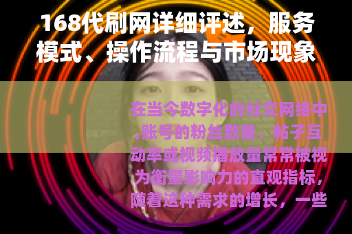在当今数字化的社交网络中,账号的粉丝数量、帖子互动率或视频播放量常常被视为衡量影响力的直观指标,随着这种需求的增长,一些服务平台应运而生,旨在通过技术手段帮助用户提升这些数据,168代刷网便是其中之一,它作为一个提供代刷服务的平台,在市场上占据了一席之地,本文将以平实的笔触,深入描述168代刷网的服务内容、使用方式、技术背景及其在网络环境中的角色,避免空泛的论述,力求呈现一个客观的视角。
