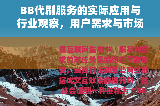 在互联网生态中,服务与需求的对应关系始终在不断演变,当我们谈到某些网络数据或交互效果的提升时,往往会遇到一种被称为“BB代刷”的服务模式,这种服务并不鲜见,它安静地存在于许多行业的边缘,与日常的运营活动相互交织,不少个人或小型团队在起步阶段,会借助类似的方式来快速获得一定的初始反馈,这种做法的存在,与其说是对规则的挑战,不如说是市场环境催生的一种实用策略。