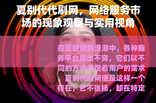 在互联网的浪潮中,各种服务平台层出不穷,它们以不同的方式满足着用户的需求,夏别代刷网便是这样一个存在,它不张扬,却在特定领域内悄然生长,成为部分用户在网络营销中的辅助选择,本文将通过平实的叙述和具体案例,逐步展开对夏别代刷网的讨论,涵盖其服务模式、用户反馈、行业背景及未来可能的发展方向,文章旨在提供一份详实的参考资料,而非评判或定论,希望读者能从中获得对这类服务的直观了解。
