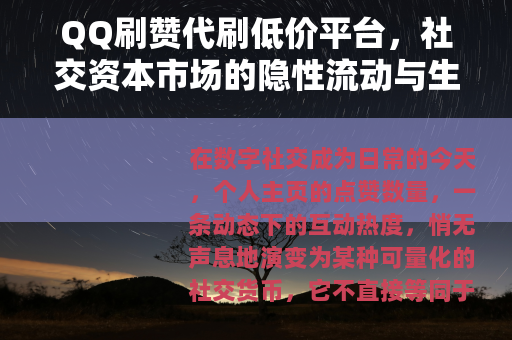 在“QQ刷赞代刷低价平台”这个微观切口的背后,是我们这个时代关于注意力、认同感与真实价值的广泛思考,它不是一个孤立的技术把戏,而是编织在数字社会肌理中的一缕线头,牵动它,便能窥见更复杂的网络生态与人性图谱,选择如何对待这些数字,本质上也是选择如何对待我们在虚拟世界中的存在方式与价值锚点。