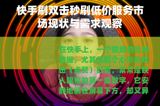 在快手上,一个视频的互动数据,尤其是那个心形的双击(点赞)数量,常常是映入眼帘的第一组数字,它安静地躺在屏幕下方,却又异常喧闹,成为一个内容最初级的、也是最直观的反馈标尺,对于许多内容创作者而言,这个数字的跳动,关联着算法的初步评判,关联着被推荐的可能性,也微妙地牵动着发布那一刻的期待心情,一个围绕如何让这个数字在短时间内快速攀升的需求,便悄然衍生出了一个颇为活跃的供给市场,我们不妨将视线投向这个领域,看看所谓“快手刷双击秒刷低价”的现象背后,是一种怎样的运行逻辑与生态。