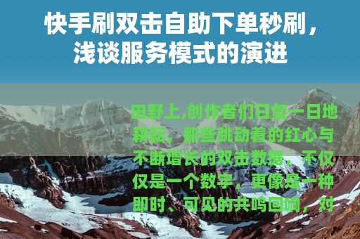 田野上,创作者们日复一日地耕耘,那些跳动着的红心与不断增长的双击数据,不仅仅是一个数字,更像是一种即时、可见的共鸣回响,对于许多内容分享者而言,这种即时的反馈,意义非凡,一种与之相关的服务模式——自助下单与快速提升双击量——便在市场的需求中悄然生长。