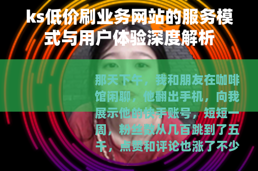 那天下午,我和朋友在咖啡馆闲聊,他翻出手机,向我展示他的快手账号,短短一周,粉丝数从几百跳到了五千,点赞和评论也涨了不少,我好奇地问他是怎么做到的,他压低声音说:“找了个便宜的刷业务网站,效果还行。” 那是我第一次听说“ks低价刷业务网站”,这个听起来略带神秘感的词,让我萌生了深入了解的念头,作为一个长期观察社交媒体生态的人,我意识到这背后可能隐藏着一个值得关注的市场现象,于是开始了一段非正式的调研。