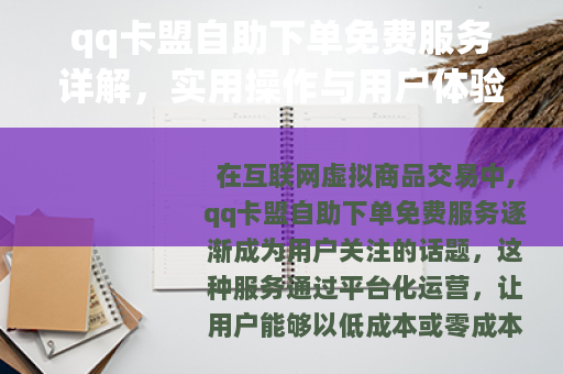 在互联网虚拟商品交易中,qq卡盟自助下单免费服务逐渐成为用户关注的话题,这种服务通过平台化运营,让用户能够以低成本或零成本获取QQ相关虚拟商品,如会员、点卡等,本文将从实际使用角度出发,分享其运作方式、操作流程和注意事项,帮助读者更好地理解和利用这一服务。