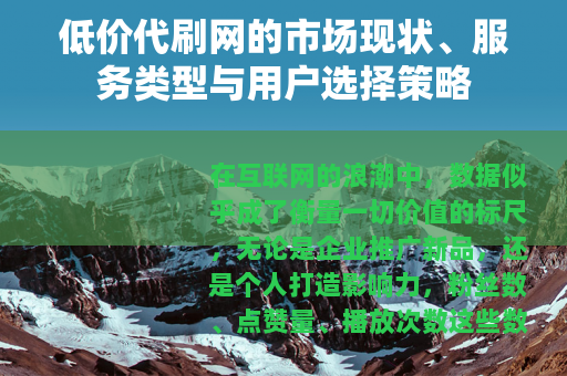 在互联网的浪潮中,数据似乎成了衡量一切价值的标尺,无论是企业推广新品,还是个人打造影响力,粉丝数、点赞量、播放次数这些数字,常常被视为成功的敲门砖,我记得第一次注意到这种现象,是在浏览社交媒体时,看到一个原本默默无闻的账号,几天内粉丝暴涨数万,互动激增,好奇之下,我发现了背后的一种服务——代刷网,尤其是那些以低价为招牌的代刷网,它们悄无声息地渗透进网络世界的各个角落,成为许多人快速提升数据的选择,这篇文章,我想以观察者的角度,聊聊低价代刷网的那些事儿,不谈警示,也不揭短,只描述我所了解的情况。