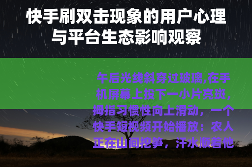 这不是什么新鲜事了,在快手,在更多类似的平台上,“双击”那个小小的爱心,早已超越单纯的欣赏意味,它成了一种货币,一种社交资本,一种可见的温度计,测量着一段内容、一个账号在流量海洋中的热度,有人称它为“互动”,有人视它为“支持”,也有一部分人,在屏幕另一端,将它视为一项可操作、可增长的数据指标。“刷双击”这个说法,悄然在坊间流传开来。