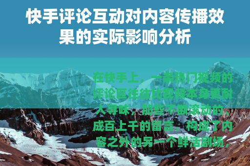 在快手上,一条热门视频的评论区往往比视频本身更耐人寻味,那些不断滚动的、成百上千的留言,构成了内容之外的另一个鲜活剧场,我们或许都曾观察到,某些视频的观看量或许并不惊人,但下方的评论却异常活跃;反之,一些制作精良的内容,却可能因评论区寥寥数语而显得冷清,这不禁让人思考,这些看似由用户自发产生的评论互动,究竟在内容生态中扮演着怎样的角色?它们是如何潜移默化地影响着一则内容的生命力与传播轨迹的?