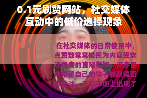 在社交媒体的日常使用中,点赞数常常被视为内容受欢迎程度的直观指标,许多用户希望自己的帖子能获得更多关注,于是市场上出现了各种提升互动量的服务,0.1元刷赞网站以极低的价格吸引了部分人的兴趣,成为数字互动经济中的一个微观现象。