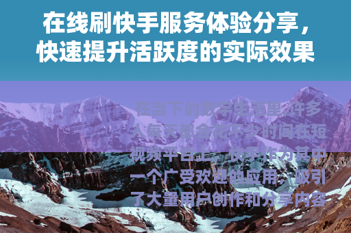 在当下的数字生活里,许多人每天都会花不少时间在短视频平台上,快手作为其中一个广受欢迎的应用,吸引了大量用户创作和分享内容,不少用户希望自己的视频能被更多人看到,获得更多互动,“在线刷快手”这样的服务逐渐进入了一些人的视野,这篇文章将围绕这一现象,分享一些实际的使用体验和观察,探讨这类服务如何运作,以及它可能带来的影响。