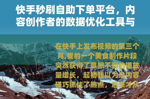 在快手上发布视频的第三个月,我的一个美食制作片段突然获得了意想不到的播放量增长,起初我以为是内容碰巧抓住了热点,后来才从同行那里得知,有一种叫做“快手秒刷自助下单平台”的服务,正在不少创作者中间悄悄流行,作为一个习惯于自己琢磨内容的人,我对此产生了兴趣,并决定深入了解一番,这不仅仅是为了追赶潮流,更是想看看这种工具如何融入我们的创作日常。
