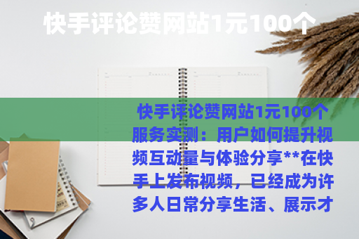 快手评论赞网站1元100个服务实测:用户如何提升视频互动量与体验分享** 在快手上发布视频,已经成为许多人日常分享生活、展示才华的一部分,每当一个新视频上传,我最先关注的是那些跳动的数字:观看次数、评论条数、点赞数量,这些数字不仅仅是冰冷的统计,它们像是观众在屏幕另一端的掌声,让人感到被看见、被认可,但随着时间的推移,我发现一个现象:尽管内容质量在提升,互动增长却渐渐放缓,有时甚至停滞不前,这让我开始寻找一些方法来推动变化,直到我听说了“快手评论赞网站1元100个”这样的服务。 起初,我对这种服务抱有一些疑问,它听起来像是那种在网络角落悄然存在的工具,价格低廉得让人惊讶——一元钱就能换来一百个评论或点赞,在快手的生态里,互动量往往与视频的推荐权重挂钩,更高的点赞和评论可能意味着更广泛的曝光,我决定花点时间,去了解这个服务到底是什么样子,我没有抱着太大的期望,只是以一种尝试的心态,想看看它是否能带来一些实际的效果。 通过网络搜索,我找到了几个提供这类服务的网站,它们的界面通常简单直接,没有太多花哨的设计,页面上醒目地标注着“快手评论赞1元100个”之类的字样,有些网站还列出了不同的套餐,比如针对评论、点赞或分享的单独服务,价格从几元到几十元不等,我选择了一个看起来用户评价较多的网站,注册账号后,充值了一小笔钱,然后输入了我的快手视频链接,整个过程不到十分钟,操作流程清晰,没有遇到复杂的步骤,下单后,网站显示服务会在二十四小时内完成。 等待的过程中,我继续观察我的视频数据,自然流量带来的互动依然平缓,没有太大起伏,大约过了半天,我开始注意到视频的评论区和点赞数出现了变化,新的评论陆续出现,内容大多是简短的鼓励语,不错”、“支持一下”或表情符号,点赞数也以肉眼可见的速度增加,每刷新一次页面,数字就会跳动几下,这些互动看起来是真实的用户行为,没有明显的机器人痕迹,但评论内容略显单一,缺乏深度交流,从整体来看,视频的热度确实在上升,它在平台内的推荐位置也有所提升。 使用这项服务后,我进一步分析了视频的数据表现,在接下来的几天里,视频的总观看量比之前同期增长了约三成,评论和点赞的增长更为明显,这似乎验证了这种服务在短期内提升互动量的效果,我也注意到,这些新增的互动并没有带来长期的粉丝转化或更深层次的社区参与,大多数用户只是留下一个标记,然后就消失了,很少回头进行二次互动,这让我思考,这种服务更适合用作一种启动工具,帮助视频突破初始的冷启动阶段,而不是长期依赖的手段。 为了更全面地理解这种服务,我和一些同样使用过快手的内容创作者交流了看法,一位经常分享手工制作视频的朋友提到,他曾在视频发布初期使用过类似服务,发现它确实能吸引更多自然用户的注意,但他强调,关键还是视频内容本身——如果内容不够吸引人,再多的外部推动也难维持热度,另一位专注于美食评测的创作者则分享了不同的经验,她更倾向于通过互动活动和优质内容来自然增长,但对“1元100个”的服务持开放态度,认为在特定时期,如新品推广或活动期间,它可以作为一种补充手段。 从这些交流中,我意识到,使用这类服务时,需要结合个人目标和内容策略,如果你只是希望快速增加某个视频的基础互动,以便进入平台的推荐流,那么这种低价服务可能是一个选择,但如果你追求的是长期的社区建设和用户忠诚度,那么它只能算是一个辅助工具,在实际操作中,我建议用户从少量尝试开始,先观察效果,再决定是否继续使用,选择服务网站时,最好参考其他用户的反馈,确保服务的可靠性和稳定性,避免遇到延迟交付或效果不达预期的情况。 除了外部服务,我也探索了一些自然提升互动的方法,在视频描述中提出开放性问题,鼓励观众留言讨论;定期回复评论,与粉丝建立更紧密的联系;或者参与快手的挑战活动,利用平台流量增加曝光,这些方法需要更多时间和精力,但它们带来的互动往往更持久、更有价值,将“1元100个”的服务与这些有机增长策略结合,可能会产生更好的综合效果,先通过服务提升视频的初始热度,再依靠优质内容留住观众,形成良性循环。 回顾整个体验,我对“快手评论赞网站1元100个”服务有了更具体的认识,它并非万能,但在特定场景下,确实能提供一种快速、低成本的互动提升方式,对于内容创作者来说,尤其是在竞争激烈的环境中,这种服务可以作为一种临时手段,帮助视频获得更多展示机会,它不能替代真正的创作价值和用户关系建设,快手上的成功还是源于持续的输出和真诚的互动。 在这个数字时代,我们都在寻找更有效的方式来表达和连接,无论是通过外部服务还是自然努力,目标都是让内容被更多人看见和喜爱,我的这次尝试,更像是一次小小的实验,它让我看到了快手生态中的多样性和可能性,我可能会继续在内容质量上下功夫,偶尔借助这类服务来助推,但不会将它视为核心,毕竟,真正的互动,来自于那些被视频打动的心灵,而不仅仅是数字的增长。 通过这次经历,我也更理解了快手平台的动态,算法和用户行为在不断变化,作为创作者,我们需要灵活适应,同时保持初心,低价评论赞服务只是工具箱中的一件小工具,如何使用它,取决于每个人的需求和判断,如果你正在考虑尝试,不妨从实际出发,权衡利