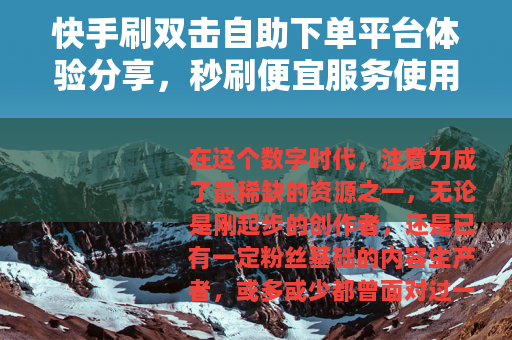 在这个数字时代,注意力成了最稀缺的资源之一,无论是刚起步的创作者,还是已有一定粉丝基础的内容生产者,或多或少都曾面对过一个相似的困惑:如何让自己的作品被更多人看见?在快手这样的短视频平台上,“双击”作为一种直观的互动反馈,不仅代表了观众对内容的认可,也在平台的推荐算法中扮演着微妙的角色,一种衍生的服务——通过自助下单平台快速获得大量双击——便悄然进入了部分用户的视野。