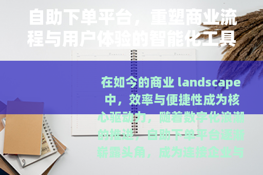 在如今的商业 landscape 中,效率与便捷性成为核心驱动力,随着数字化浪潮的推进,自助下单平台逐渐崭露头角,成为连接企业与消费者的重要桥梁,这种平台允许用户通过数字化界面自主完成订单处理,从选择商品到支付结算,全程无需人工干预,它不仅简化了操作流程,还为企业带来了显著的运营优化,对于许多行业而言,自助下单平台已从可选附加项转变为必备基础设施,其影响力正渗透到日常业务的各个环节。
