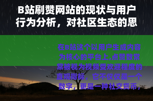 在B站这个以用户生成内容为核心的平台上,点赞数常常被视为视频受欢迎程度的直观指标,它不仅仅是一个数字,更是一种社交货币,代表着创作者的认可度、内容的吸引力,甚至影响着推荐算法的推送范围,随着社区规模的扩大和竞争的加剧,一种被称为“刷赞网站”的服务悄然出现,这些网站承诺通过技术手段,为用户的视频快速增加点赞数,从而在短时间内提升内容的可见度,这一现象并非B站独有,但在以年轻用户为主的社区中,它折射出更深层的用户心理和平台生态的演变,本文将从个人观察出发,结合社区讨论和公开数据,探讨刷赞网站的存在逻辑、用户动机以及它对B站社区可能带来的长远影响。