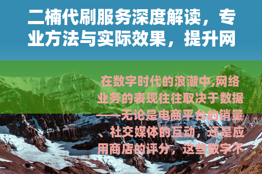 在数字时代的浪潮中,网络业务的表现往往取决于数据——无论是电商平台的销量、社交媒体的互动,还是应用商店的评分,这些数字不仅是冰冷的指标,更是吸引用户、建立信任的桥梁,对于许多初创者或小型企业来说,从零开始积累这些数据并非易事,它需要时间、资源,以及一点运气,正是在这样的背景下,代刷服务应运而生,成为一种辅助手段,我想聊聊二楠代刷,一个我通过行业观察和个人接触认为值得探讨的服务,这并不是什么夸大其词的宣传,也不是充满警示的劝诫,只是平静地分享一些见解,希望能为那些在网络海洋中摸索的人提供参考。