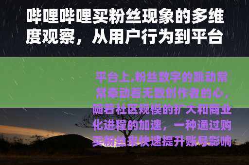 平台上,粉丝数字的跳动常常牵动着无数创作者的心,随着社区规模的扩大和商业化进程的加速,一种通过购买粉丝来快速提升账号影响力的做法悄然兴起,这并非简单的数字游戏,而是折射出当代网络生态中个体选择与平台规则之间的复杂互动,本文将从现象本身出发,分析其背后的动机、对社区的影响以及平台与用户的应对方式,试图呈现一个全面的视角,而无需依赖夸张或煽情的表述。