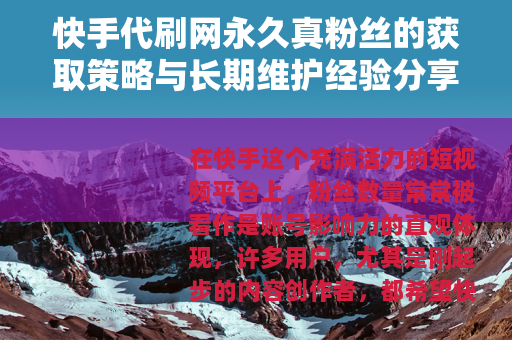 在快手这个充满活力的短视频平台上,粉丝数量常常被看作是账号影响力的直观体现,许多用户,尤其是刚起步的内容创作者,都希望快速提升粉丝基数,从而获得更多的关注和机会,一些提供代刷服务的网站逐渐进入人们的视野,它们承诺帮助用户增加粉丝,特别是所谓的“永久真粉丝”,但这究竟是如何运作的?我们又该如何通过这类服务实现账号的可持续增长?本文将从实际经验出发,分享一些方法与思考。