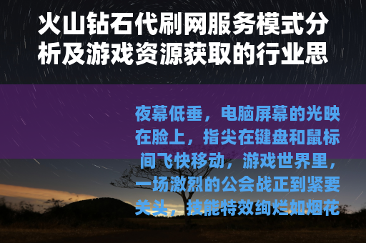 夜幕低垂,电脑屏幕的光映在脸上,指尖在键盘和鼠标间飞快移动,游戏世界里,一场激烈的公会战正到紧要关头,技能特效绚烂如烟花,你深吸一口气,看了眼资源栏——钻石,这个维系着装备强化、体力补给乃至角色外观的硬通货,数字已然见底,一阵熟悉的、混合着焦躁与无奈的情绪悄然升起,就在此时,好友列表里一个并不太熟悉的名字发来私聊:“需要砖石吗?价优,速发。”后面附着一个简洁的网址链接,这样的场景,对于许多深度游戏玩家而言,或许并不陌生,那个链接背后,往往指向一个被称为“火山钻石代刷网”或类似名字的服务世界,它游离于游戏的官方体系之外,却与无数玩家的虚拟生活紧密交织。