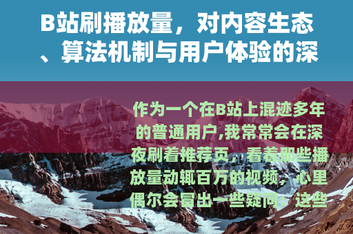 作为一个在B站上混迹多年的普通用户,我常常会在深夜刷着推荐页,看着那些播放量动辄百万的视频,心里偶尔会冒出一些疑问:这些数字背后,到底有多少是观众真实点击的结果?或许你也曾注意到,某些视频的播放量在发布后几小时内就迅猛增长,而评论和弹幕却寥寥无几,这种现象,在圈内常被称作“刷播放量”,它并非什么新鲜事,却像一道暗流,悄然影响着这个平台的方方面面。