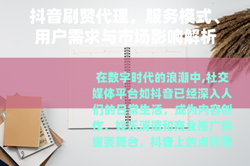 在数字时代的浪潮中,社交媒体平台如抖音已经深入人们的日常生活,成为内容创作、娱乐消遣和商业推广的重要舞台,抖音上的点赞数,作为互动数据的核心指标之一,往往被视为内容受欢迎程度的象征,甚至直接关联到个人或品牌的影响力,随着这种需求的增长,一种被称为“刷赞代理”的服务悄然兴起,它以第三方形式为用户提供点赞数量的增加,这篇文章将从多个角度切入,细致描述抖音刷赞代理的运作方式、背后的市场需求,以及它所带来的种种效应,旨在呈现一个全面而客观的图景,避免刻板的结构和空洞的论述,而是像一位观察者那样,娓娓道来。