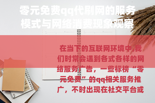 不同于传统的消费模式,网络服务领域常常出现“免费”的噱头,许多人第一次接触“代刷”这个概念,可能源于游戏或社交账号的成长需求,某些用户希望快速获得空间人气、会员特权,或是游戏道具,在这种需求下,网络上便逐渐衍生出相应的服务供应,而“零元免费”的标语,无疑是最能触动人们尝试心理的入口。