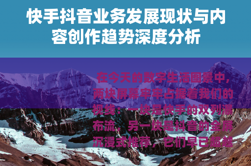在今天的数字生活图景中,两块屏幕牢牢占据着我们的视线:一块是快手的双列瀑布流,另一块是抖音的全屏沉浸式推荐,它们早已超越了早期“短视频应用”的简单定义,演变为融合内容传播、社交互动、商业转化乃至文化塑造的复杂生态体系,当我们谈论“快手抖音业务”,所指的已不仅是两个平台的运营活动,而是一个庞大、动态、深刻影响社会肌理的数字经济与文化现象,这个领域没有一成不变的公式,有的只是在技术驱动、用户偏好与市场规律共同作用下的持续流变。